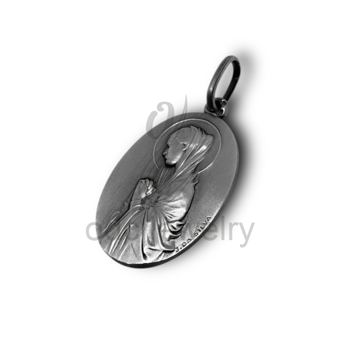 Etiquetas: medalha, medalha religiosa, medalha prata, religião, cristianismo, cristão, virgem maria, virgem oval, virgem flores, joão silva, manto, mãos unidas, oração, lírios, flores, ave maria, anjo gabriel, jesus, verso liso, gravação, loja online, jóias, jóias prata, prata lei 925, ODC, Portugal