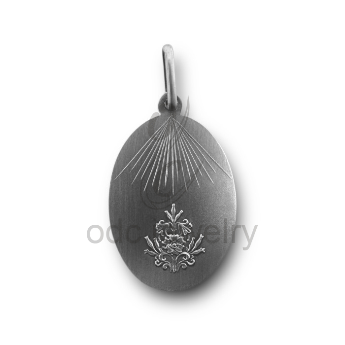 Medalha argenti "Virgem Oval & Flores - Carrapito"