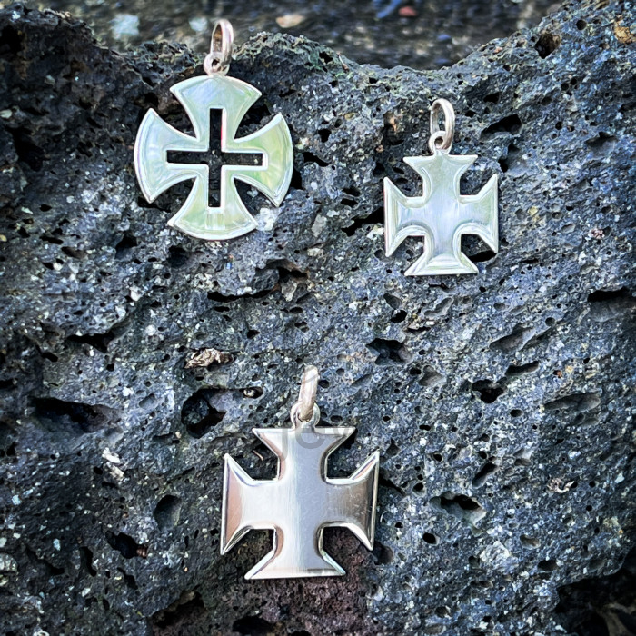 Cruz lisa "Ordem dos Templários" com argola, em prata